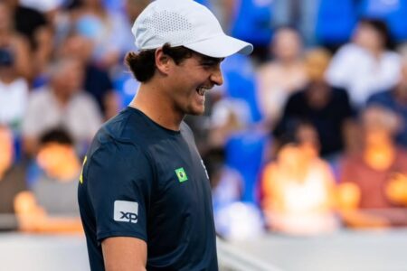 TÊNIS João Fonseca estreia com vitória e derruba o atual campeão do ATP 500 da Basileia Na próxima fase do ATP 500 da Basileia, João Fonseca irá enfrentar o tcheco Jakub Mensik, número 19 do ranking há 1 mês