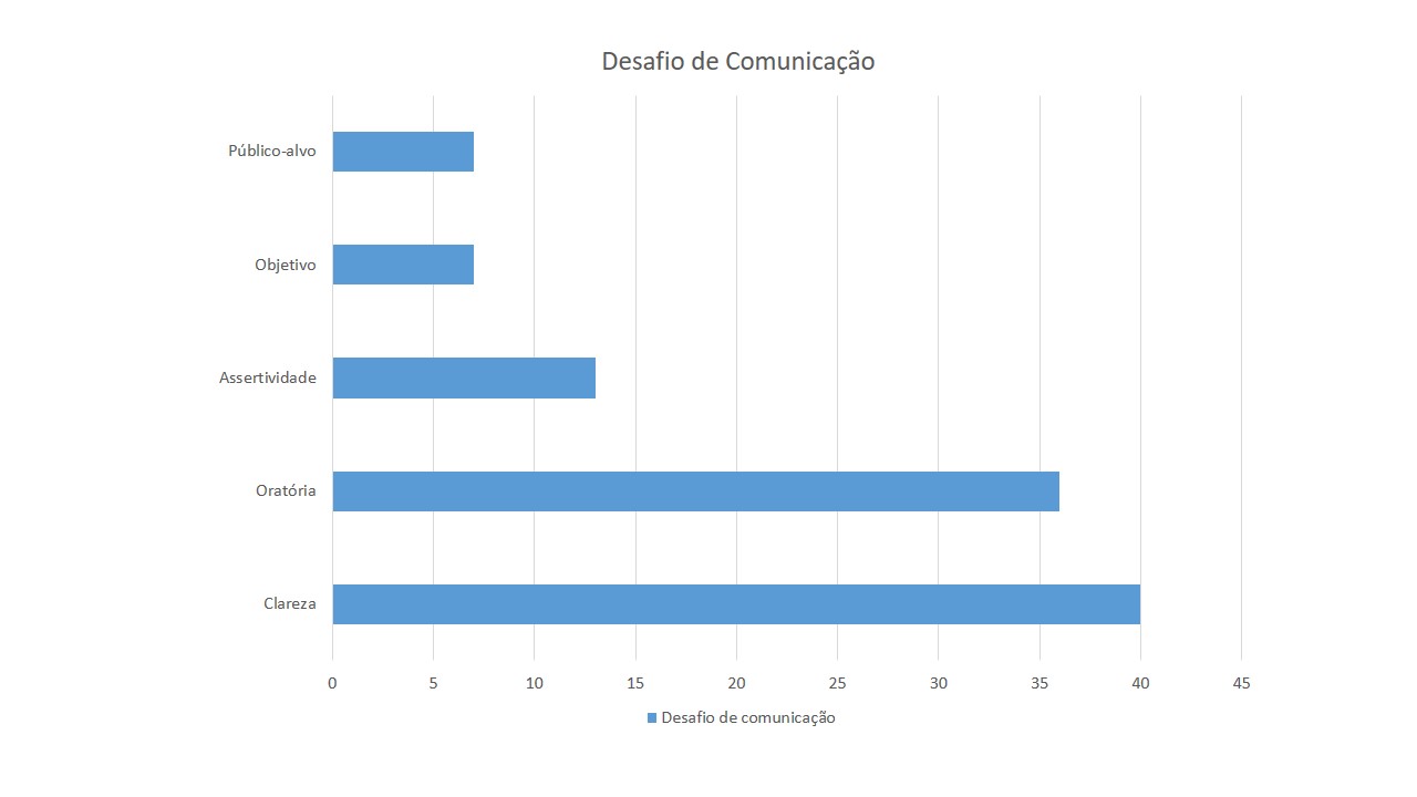 Clareza, objetividade e concisão para alcançar a compreensão do público. Além de segurança ao fazer uso da oratória, vencer o medo e a timidez para conseguir cativar as pessoas durante uma apresentação. Esses foram os dois principais desafios em relação à comunicação profissional apontados numa pesquisa elaborada dentro da minha rede de contatos. Como resultado, obtive 223 respostas.