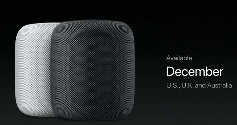 Por fim, a Apple finalmente vai se aventurar no mercado de auto-falantes inteligentes, batendo de frente com a JBL. Se trata do HomePod, com chip A8 e a Siri. O aparelho possui sete auto-falantes e tem como slogan trazer a qualidade de som do iPod para um grande ambiente.
