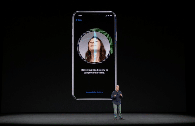 Como alternativa ao reconhecimento da impressão digital para destravar o aparelho, o iPhone X terá reconhecimento facial, feito com a câmera frontal. Para que funcione, o dono do smartphone deverá olhar diretamente para o aparelho, com os dois olhos bem abertos.