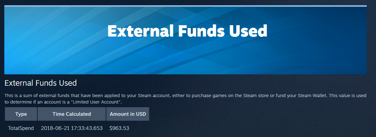 A Steam acabou de implementar uma nova aba chamada External Funds Used (ainda sem tradução) que, por ora, te dá em dólares o total que você já gastou na loja.
